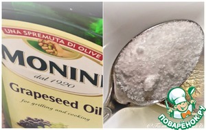 Три-четыре столовые ложки масла растительного. Лучше взять какое-нибудь вкусное. Например из виноградных косточек. И перемешать с солью. Ложки полторы с верхом, максимум.
