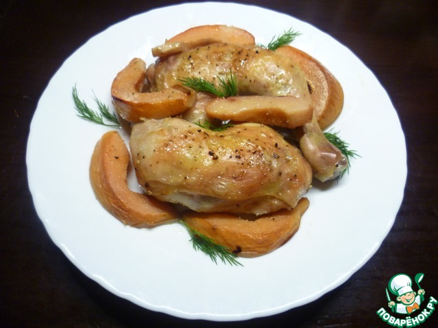 Курица и айва в рукаве