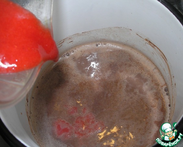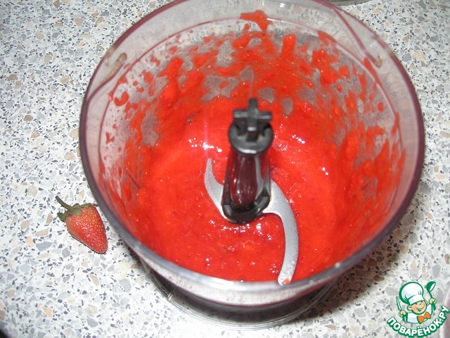 [+4]Клубника у меня была замороженная, поэтому я её разморозила и использовала сок из-под неё + немного пришлось отжать от ягод.