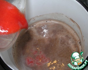Как только смесь закипит, спустя пару минут необходимо добавить полученный клубничный сок, постоянно помешивая, и 1/4 ч. л. ванилина.