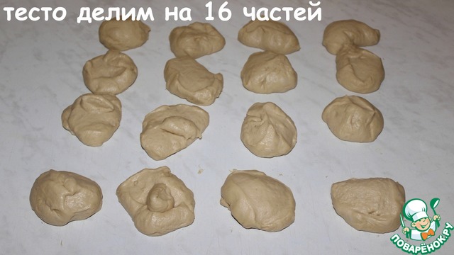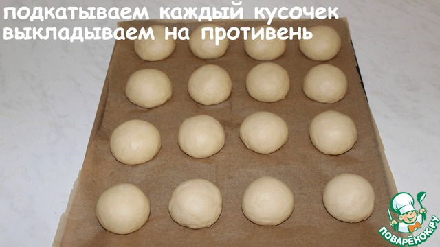 Подкатываем каждый кусочек. Выкладываем на противень.