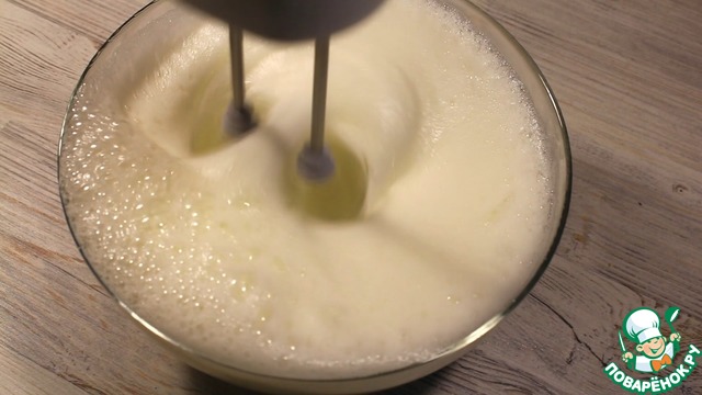 Тем временем отделяем белки и взбиваем до стойкий пены.