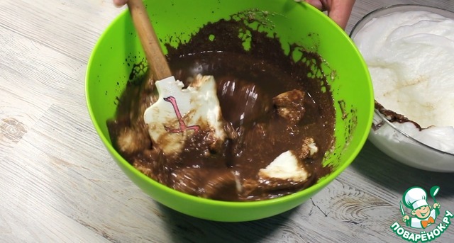 Смешиваем шоколадно-рисовою смесь и белковую