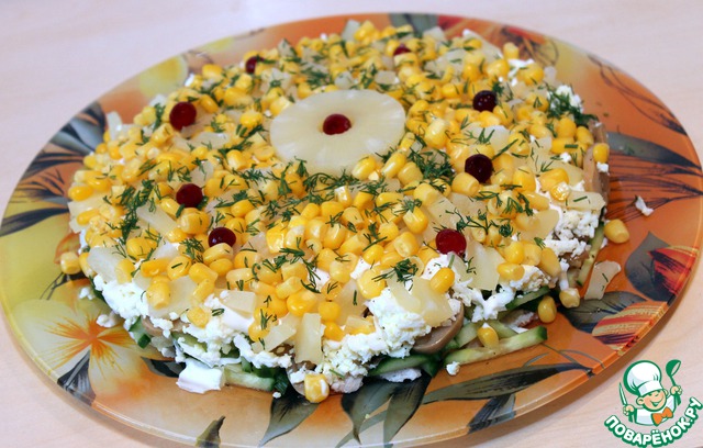 Очень вкусный салатик! по рецепту все ингредиенты я всегда перемешивала, а тут решила пофантазировать, и вот что получилось. Надеюсь, понравится.