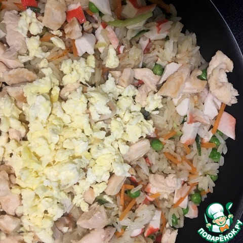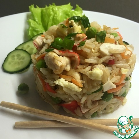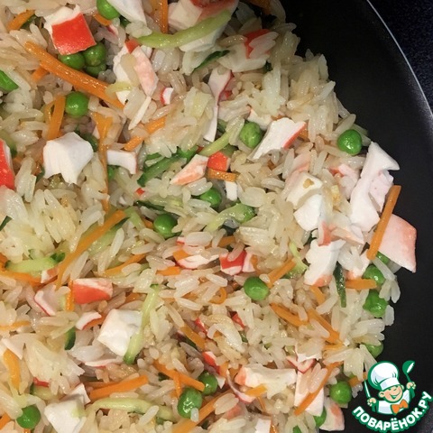 Ингредиенты для «Жареный рис с крабовыми палочками»:
