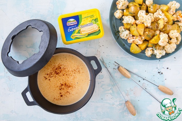 Быстрое фондю с цветной капустой и мини-картофелем от Hochland.