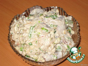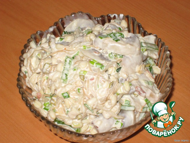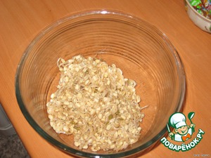 В салатник выкладываем проросшие ростки и все остальные подготовленные ингридиенты, запраляем майонезом и салат готов!