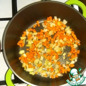 В глубоком казане на растительном масле поджарить лук с морковью, примерно 3 минуты.