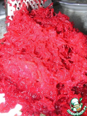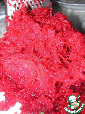 • Свеклу также промыть, очистить и натереть на мелкой тёрке.