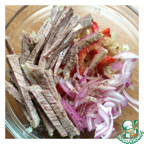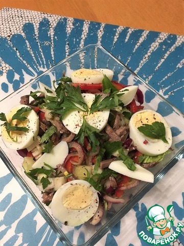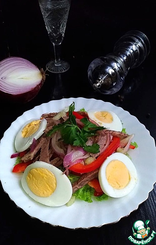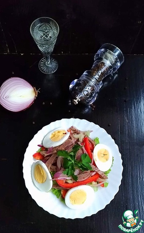 Вкусный, пикантный, сытный салат. И не смотря на свою брутальность очень нравится слабому полу. Угощайтесь!