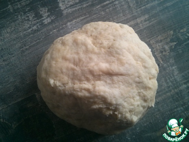 В просеянную муку добавить соль и разрыхлитель. Затем добавить молоко, мягкое сливочное масло и воду, немного вымешать, вбить яйцо. Замешать тесто, накрыть его пленкой и оставить при комнатной температуре на 20 минут.