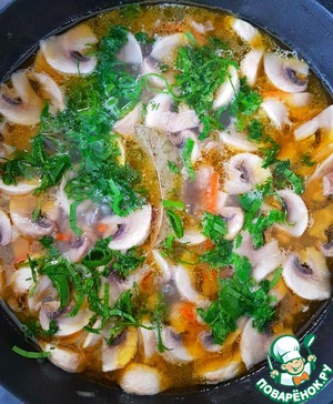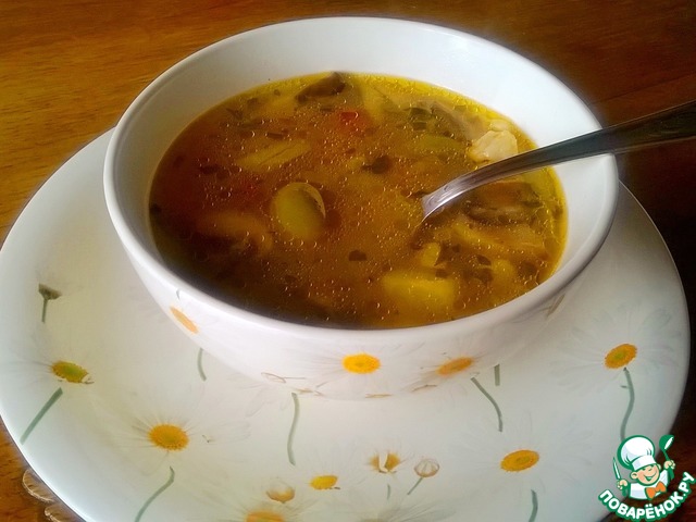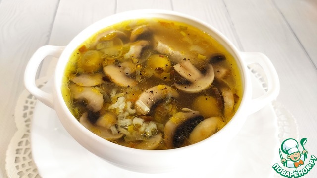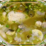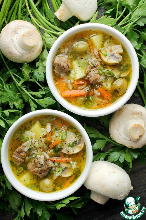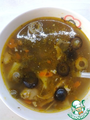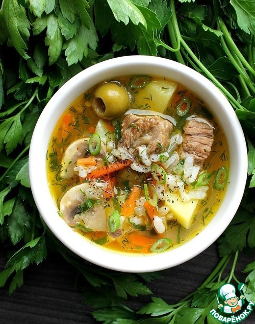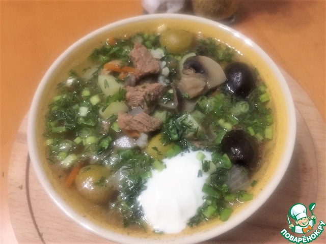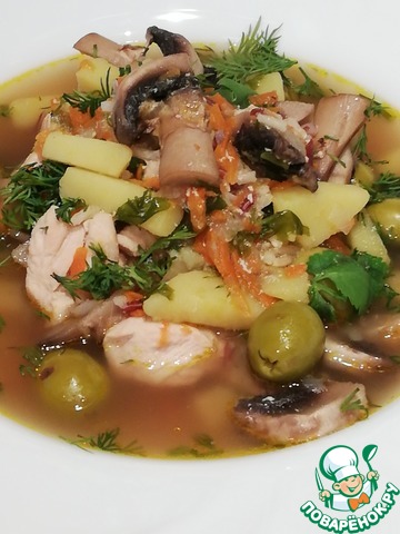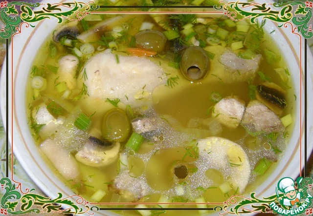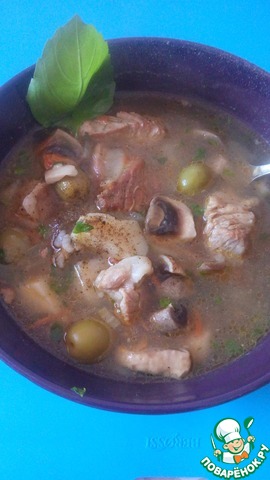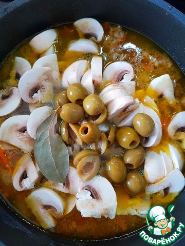 Рецепт «Мясной суп с шампиньонами и оливками»: