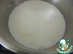 Приступим к молочному соусу. В кастрюлю с толстым дном влить молоко, довести его до кипения на среднем огне, затем уменьшить огонь и уварить молоко до 3/4 от первоначального количества (15-20 минут).