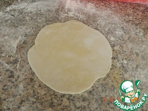Наше тесто разделить на шарики размером с грецкий орех (получилось 20 штук). Каждый шарик раскатать в тонкую лепешку. -