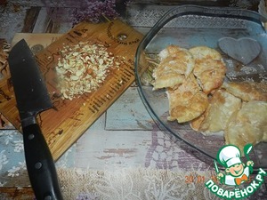 Лепешки выложть на блюдо, полить оставшимся соусом и посыпать рубленным миндалем (миндаль я обжарила в микроволновке в течение 1,5минут и порубила ножом на кусочки).