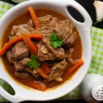 Рецепт увидела в приготовлении Гордона Рамзи, подкорректировала по вкусу нашей семьи, и вот наивкуснейшее мягкое мясо с морковью, чесноком и луком готово! Даже не знаю, что хочется съесть вперёд мясо или подливку.