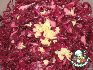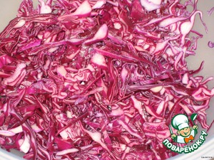 красная капуста (очень тонко пошинковать, присолить и помять руками)
