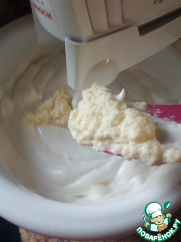В белки медленной струйкой ввести сироп (сироп можете отставить на минуту), затем постепенно добавить крем, продолжать взбивать на медленной скорости миксера.