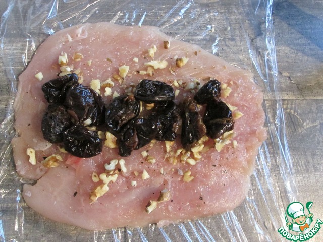 Рецепт «Куриный рулет с мандаринами и черносливом»: