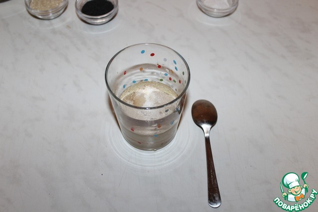В теплую воду добавляем дрожжи и сахар. Перемешиваем и оставляем на подъем.