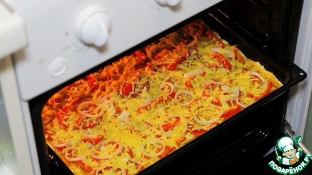 9) В заранее разогретую духовку (190 градусов) отправляем пиццу на 20 мин.