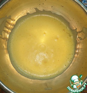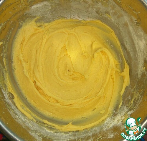Соединить яйца и масло с сахаром, взбить до однородности. Добавить муку с разрыхлителем, перемешать.