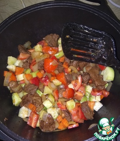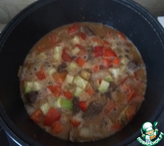 Тушим под крышкой. Тушим в зависимости от мяса, до его мягкости. -