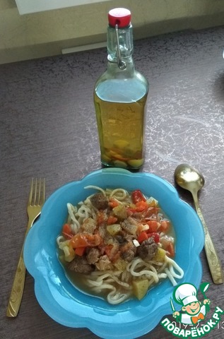 Нетрадиционный лагман. Давно я не писал на поваренке, рецептов за прошедшее время было много, но почему-то именно этим рецептом захотелось поделится. Все таки готовлю это в первый раз. Мясо использовалось оленина. Ну а в остальном вроде все как обычно.