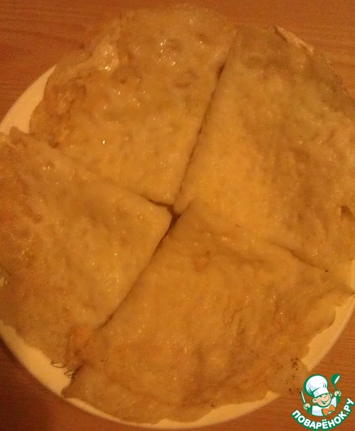 После чего сложить блинчики вчетверо. Можно слегка подогреть на сковороде (без фанатизма).