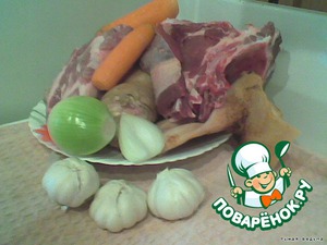 Не хочу Вас обидеть, просто напомню такую деталь: лук и морковь кладут в холодец для того, чтобы они отдали свои соки и забрали из мяса токсины (ну сейчас же всё на антибиотиках и гормонах), поэтому лук и морковь после варки выбрасывают. Я кладу лук неочищенным - тогда бульон получается золотистым).