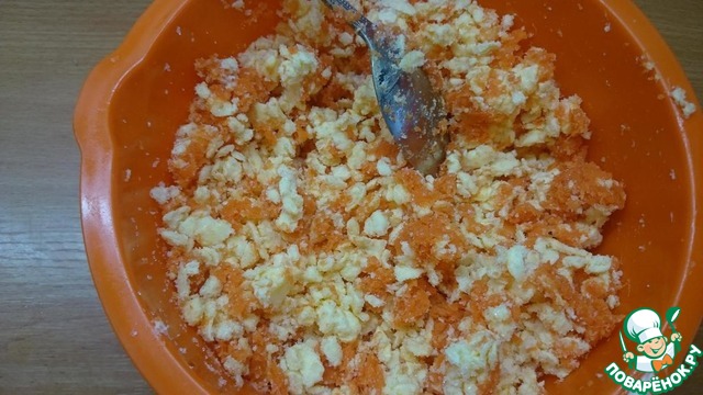 Добавляем морковно-яблочную массу и снова перемешиваем.