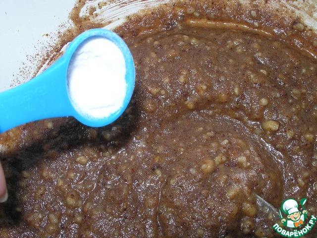 Теперь необходимо добавить щепотку мускатного ореха, щепотку соли и 1/2 ч. л. соды. Ещё раз перемешать.