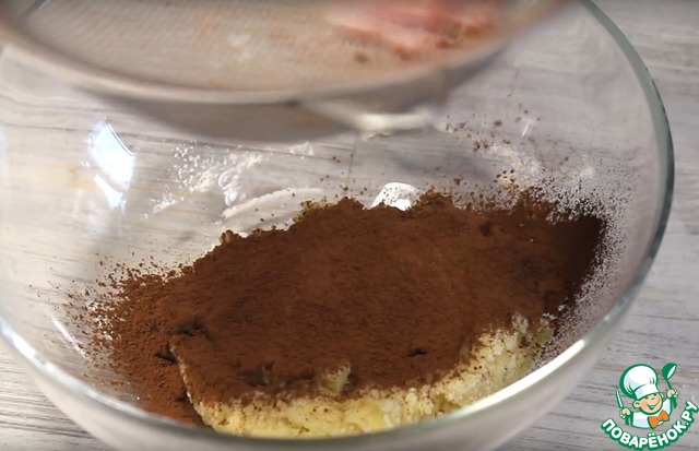 К оставшемуся тесту добавим какао-порошок. Хорошо перемешаем. -