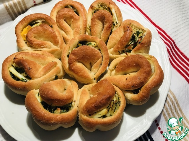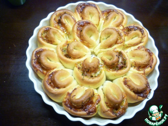 Выложить все заготовки в форму (d 24 см) по кругу. Прикрыть форму салфеткой или тонким полотенцем и поставить в тепло на 20-25 минут.