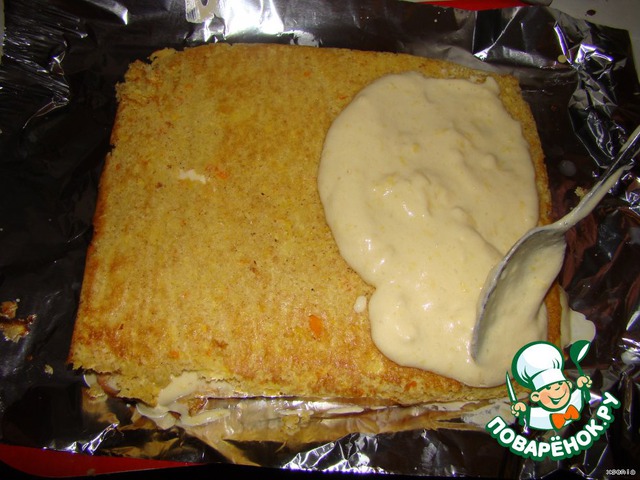 Крем :Апельсин очистить от шкурки.. цедру размять Смешать сок апельсиновый.. цедру апельсина.. вино..6 ст ложек сахара.. добавить 4 желтка... и варить до загустения.. затем взбивать массу до полного остывания крема.. в конце добавить взбитые в пену белки..