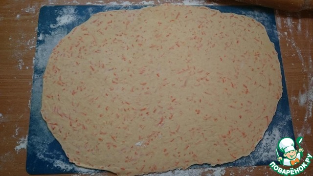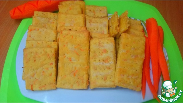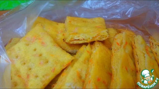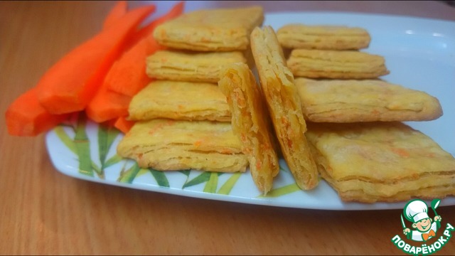Очень интересный десерт! Слоеный, с яркими кусочками моркови, несладкий, верх и низ - хрустящие, серединка мягкая... Если убрать в пакет на ночь, то на следующий день очень напоминает свой прототип (КП "Полёт" Слоеный десерт с морковью без сахара), который я и стремилась примерно повторить. Тесто можно заморозить и использовать в следующий раз (и даже сделать в виде слоек с любимой начинкой). Мне нравится с морковным тестом делать пирожки с несладкими начинками: грибы, рис, лук и пшено с курагой. Получается очень гармонично!