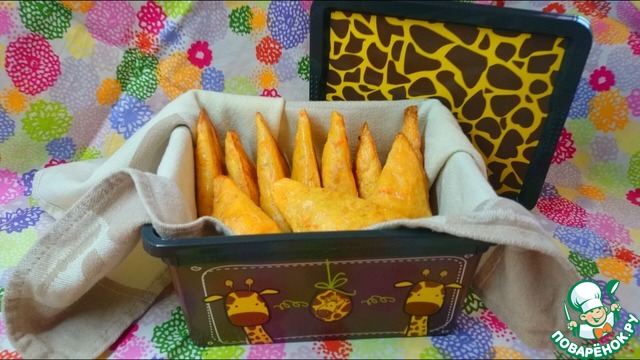 Смазала яйцом и выпекала в духовке при температуре 210` до золотистого цвета, примерно 15 минут.