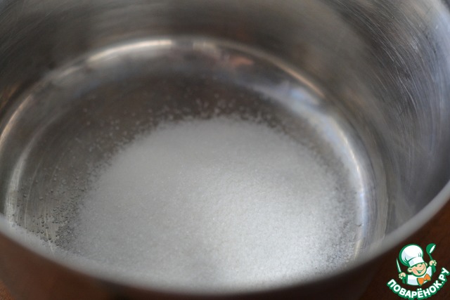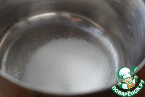 В кастрюльку добавить сахар и поставить на медленный огонь.