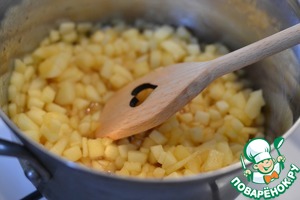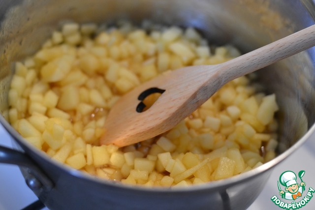 Аккуратно добавить яблоки к горячему сахару. Перемешать и потушить пару минут.