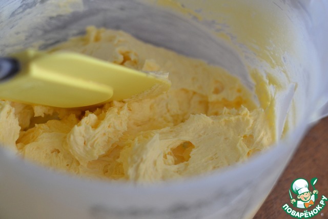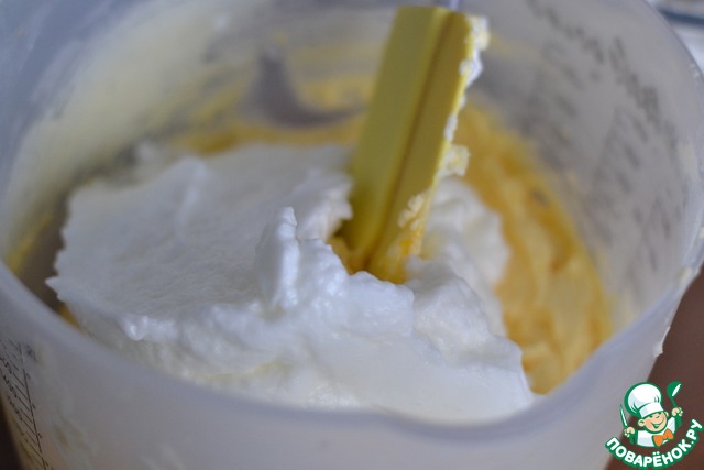 Добавить частями белки к масляной смеси, чередуя с мукой.
