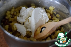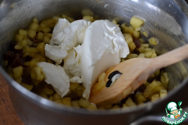 [+5]Маленькая неожиданность: при карамелизации образовалось много жидкости (или лимонный сок, или яблоки дали), и в ней яблоки сварились и стали мягкими, было тяжело вмешивать маскарпоне.