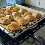 Нарезаем по диагонали на кусочки. Выпекаем при температуре 200 градусов 20 минут.
