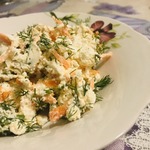 [+4]Салат приготовила без соли, с подсолнечным нерафинированным маслом; из зелени взяла кинзу, укроп, петрушку и зелёный лук.