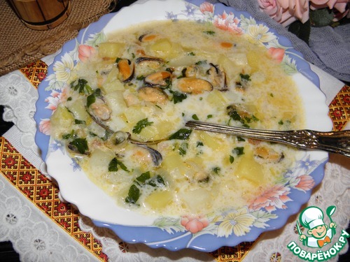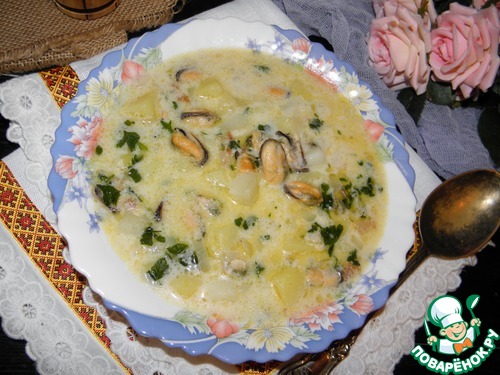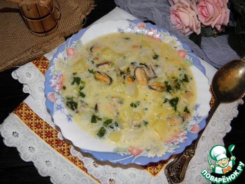 Ингредиенты для «Суп с мидиями "Бархатный"»: