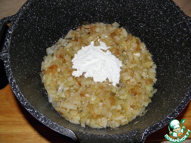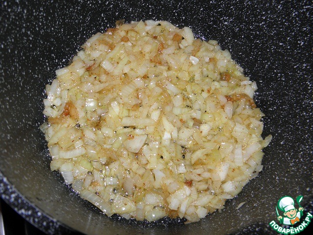 Лук очистить и измельчить, шпик нарезать полосками. В кастрюле разогреть сливочное масло, обжарить шпик 3 мин, добавить лук и обжарить еще 5 мин.