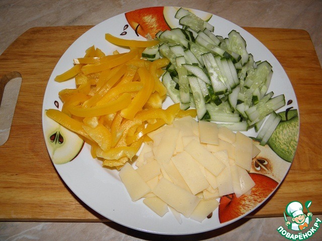 У сладкого перца удалить сердцевину вместе с плодоножкой, промыть и нашинковать соломкой,