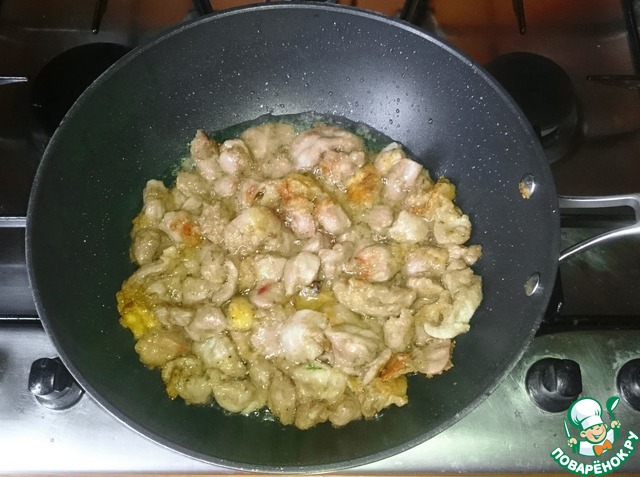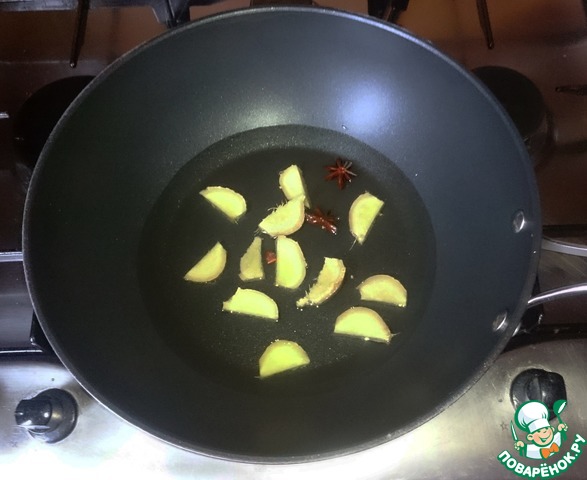 Вок ставвим на огонь, разогреваем в нем хорошую порцию растительного масла.