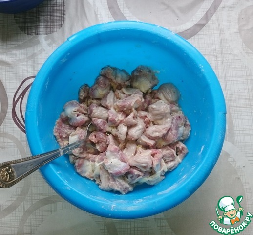 Захотелось приготовить куриные желудочки. Решил немного поэкспериментировать. Получилось очень даже неплохо. Вместо желудков прекрасно подойдет куриная грудинка, свиная вырезка или шея. На первый взгляд ингредиентов много, но делается все очень просто и быстро.