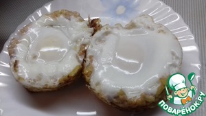 Выложила фарш по стенками формы, чтобы получилась чашечка/тарталетка и пожарила её.