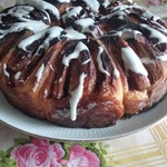 [+4]В следующий раз буду выпекать в форме для кексов с отверстием в серединке, а то пришлось прикрывать при выпечке - верх начал подгорать. Но, может, это потому что я его сверху смазала перед выпечкой яйцом.